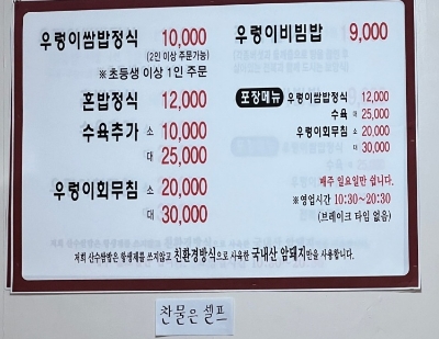 우렁이쌈밥: 이 집의 대표 메뉴로, 우렁이와 다양한 채소, 쌈을 한꺼번에 즐길 수 있는 메뉴입니다. 우렁이 특유의 쫄깃한 식감과 자연스럽게 어우러지는 다른 재료들의 맛이 일품입니다.